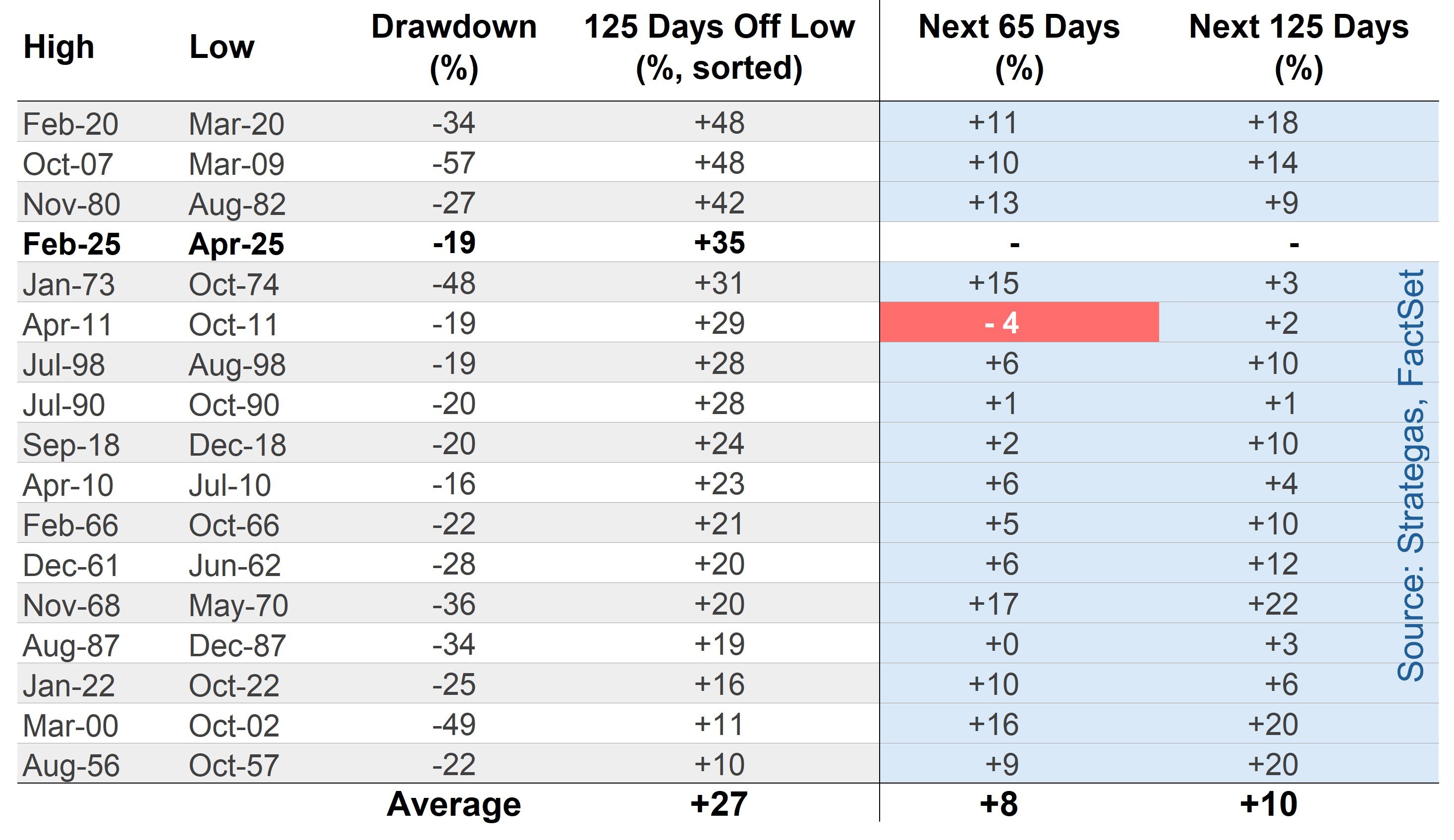 Per our partners at Strategas (a Baird company) this week marked 6 months (125 trading days) off the April 8 stock market low. To the right is a list of every stock market drawdown of -15% or worse since 1950, the market’s 125-day return off each of those lows, and how the market did over the following 3- and 6-month windows. As Strategas concluded, strong forward performance tended to continue +3 and +6 months ahead. The only negative return was in the +65 days after the first 6-months off the 2011 low. In markets, momentum tends to beget momentum; nowhere is that clearer than here.