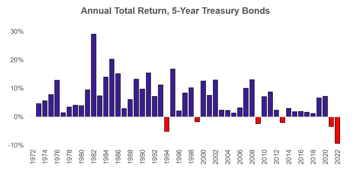 Figure 1. Five-year Treasury bonds had their worst annual total return in decades.